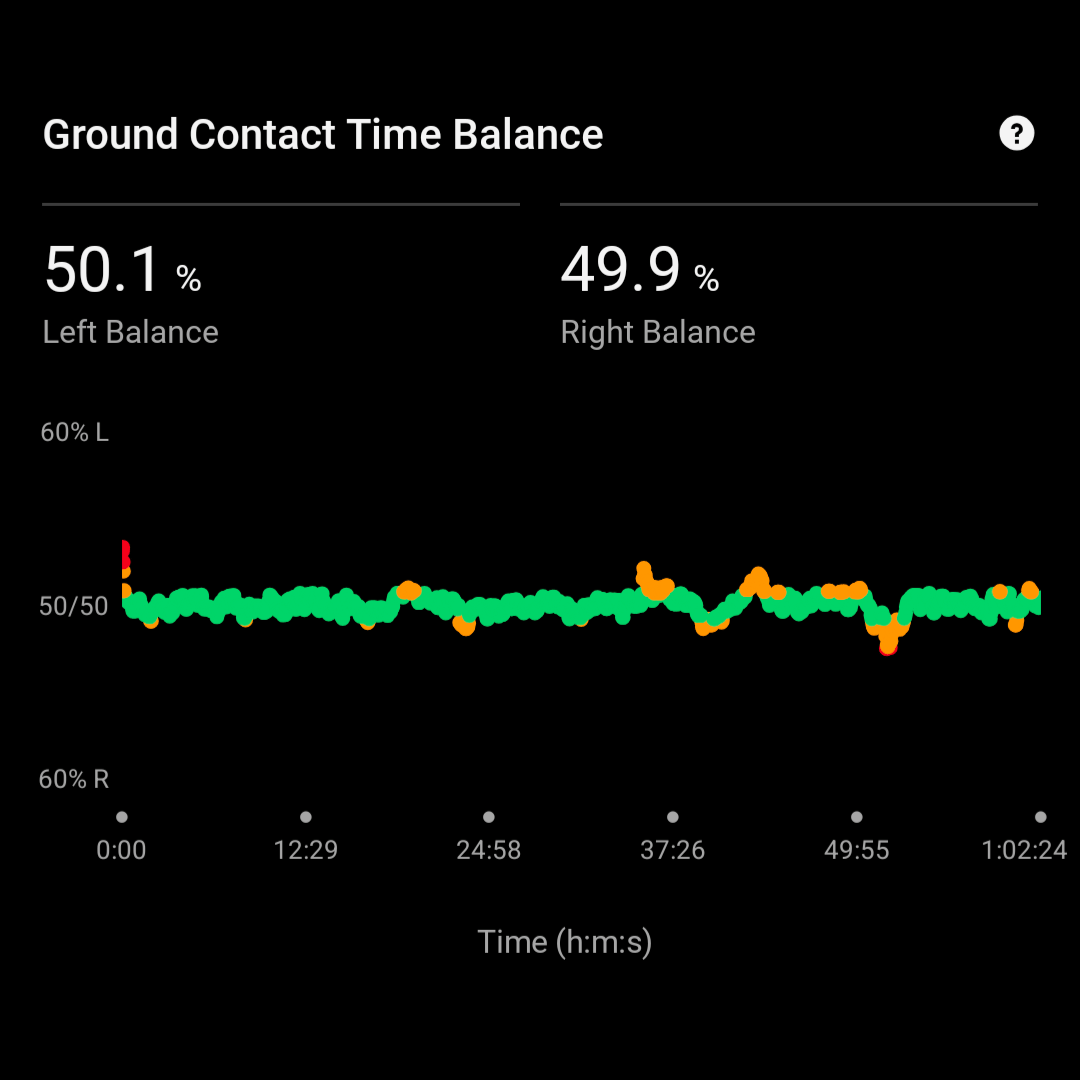 For runners, a good task is to look at your latest 3 runs and check out the ground contact time balance*: